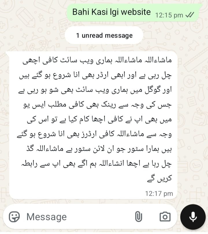 This e-commerce website was designed to provide a smooth and user-friendly online shopping experience with a WhatsApp-based ordering system. Instead of a traditional cart checkout, customers can place orders directly through WhatsApp with complete product details automatically included in the message.